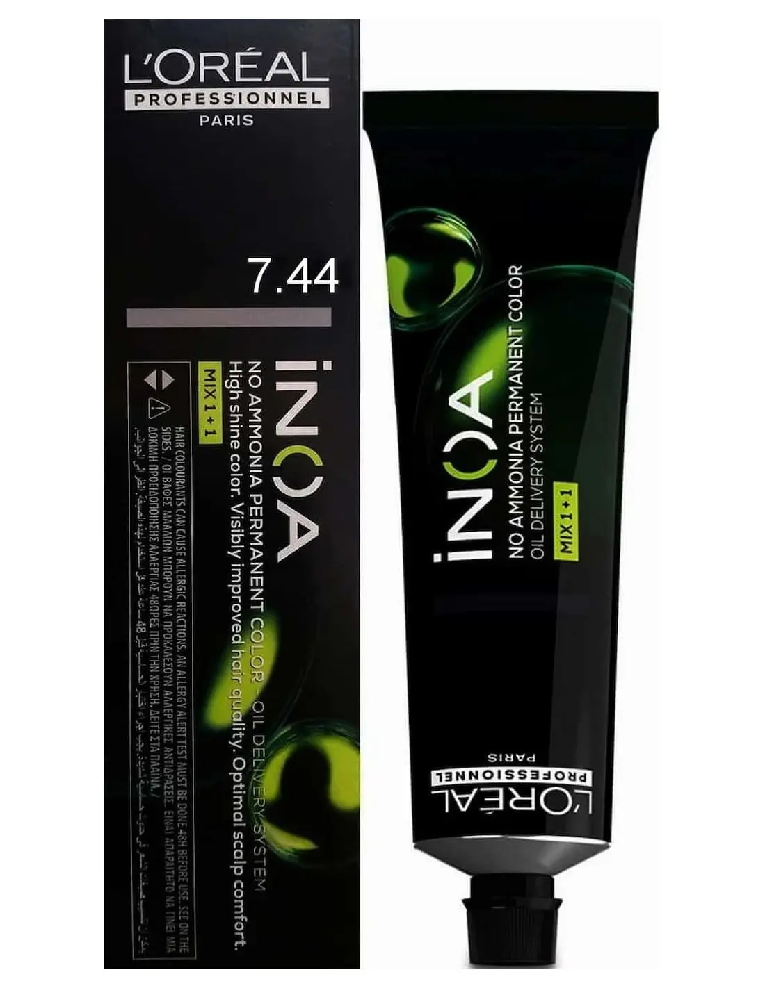 Η Βαφή Μαλλιών Inoa 7.44 από τη L'Oreal Professionnel είναι μια επαγγελματική μόνιμη βαφή που προσφέρει εντυπωσιακό χαλκό χρώμα και τέλεια κάλυψη λευκών μαλλιών. Χωρίς αμμωνία, η προηγμένη αυτή βαφή εξασφαλίζει άνεση για το τριχωτό της κεφαλής και χαρίζει πλούσιο, λαμπερό χρώμα μεγάλης διάρκειας.