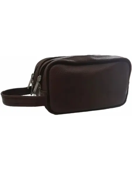 Δερμάτινo διπλό νεσεσέρ Luxus σε καφέ χρώμα ιδανικό για να χωρέσετε όλα τα ξυριστικά και τα προϊόντα περιποίησής σας.