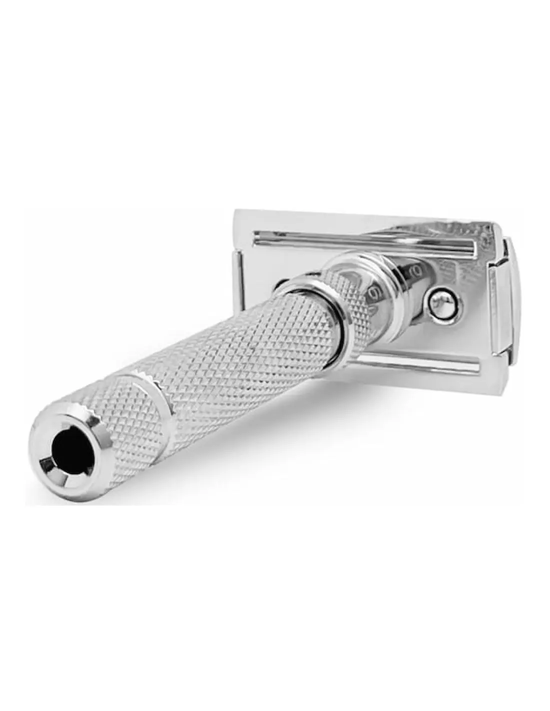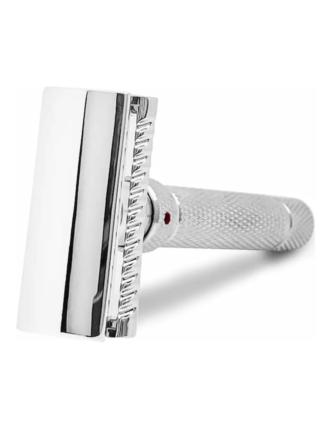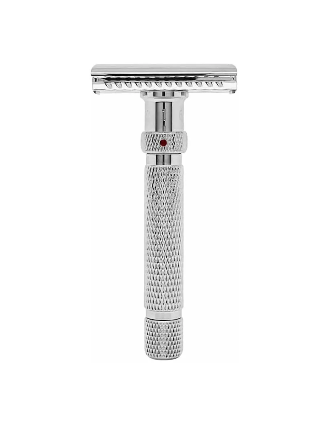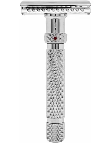 The levels are easily and intuitively adjusted through a rotating ring located at the top of the handle. The red dot will always indicate the level at which the safety razor has been set.