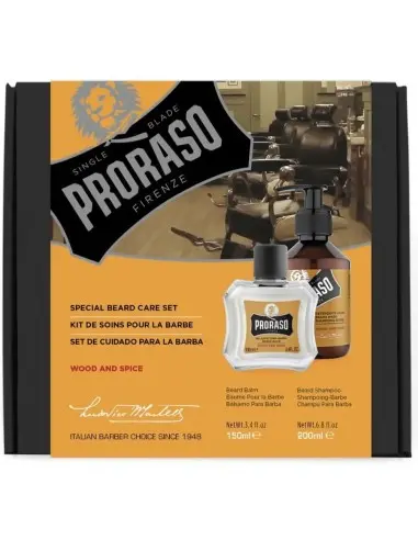 Transform your beard care routine with Proraso's Beard Care Set. This premium duo includes a 200ml Wood & Spice Shampoo, designed to cleanse and refresh, and a 100ml Balm, perfect for hydrating and softening your beard.