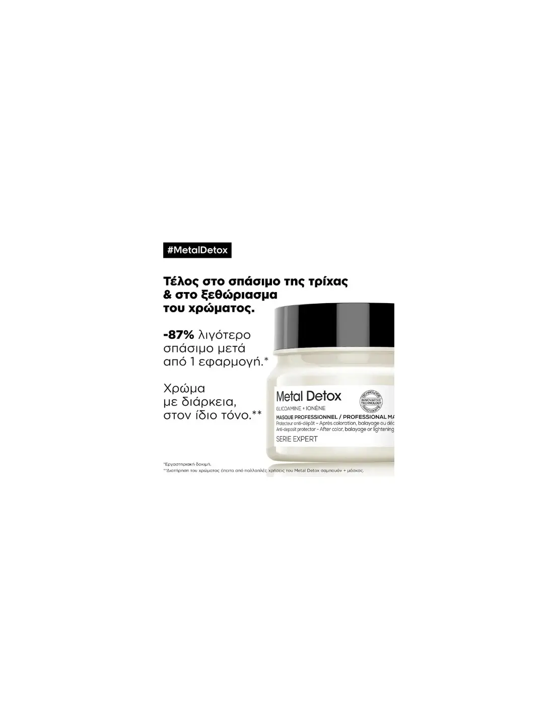 The Metal Detox Mask by L'Oreal Professionnel is a groundbreaking hair treatment designed to detoxify your hair from harmful metal residues. Metals from water and the environment can accumulate in the hair fiber, leading to dullness, breakage, and unreliable color results.