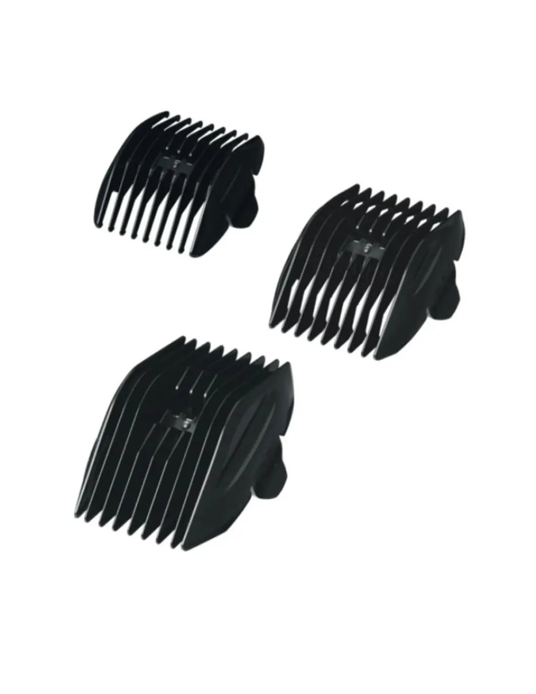 A built-in adjustable dial allows seamless blade length changes between 0.8 mm and 2.0 mm—no attachment needed. Additionally, it comes with three dual-sided comb guides, offering six different cutting lengths (3/4 mm, 6/9 mm, and 12/15 mm) to accommodate a range of styles from fades to longer trims.