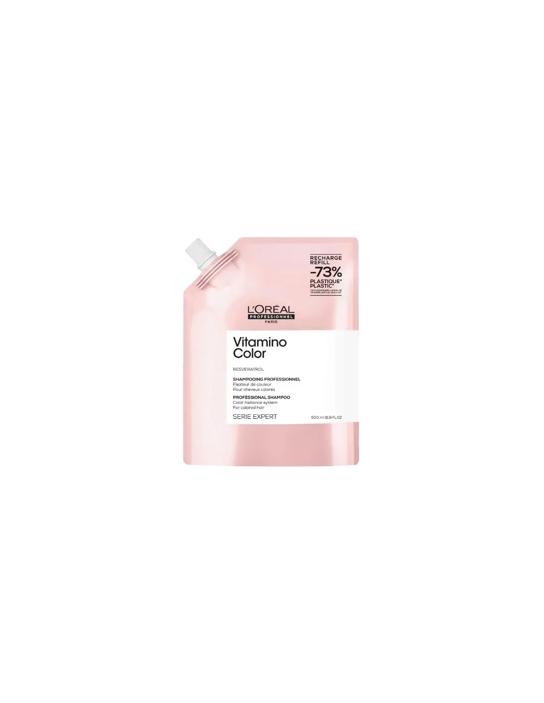The Vitamino Color Shampoo Refill L'Oreal Professionnel 500ml is a professional hair care solution specifically designed to protect and enhance color-treated hair. Enriched with resveratrol, a powerful antioxidant inspired by skincare, this shampoo helps maintain your hair's vibrant color and protect it from damage.