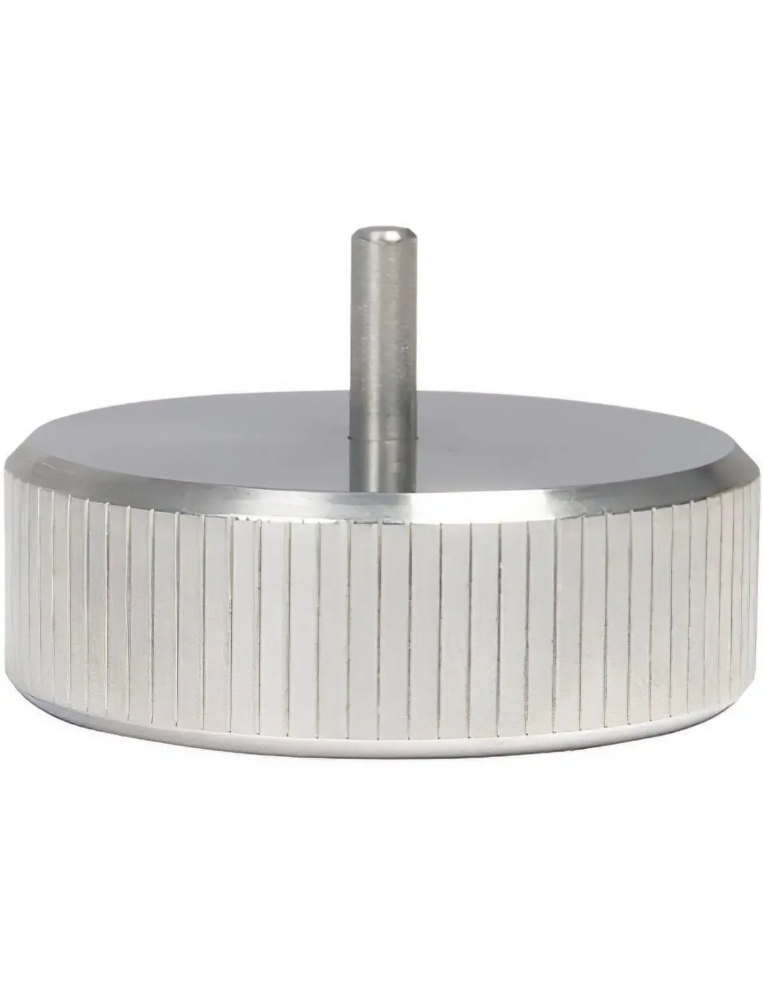 This timeless, stainless steel stand is a tribute to the Ambassador razor’s signature adjustment dial, complete with the razor’s unique knurling pattern and machined finish.